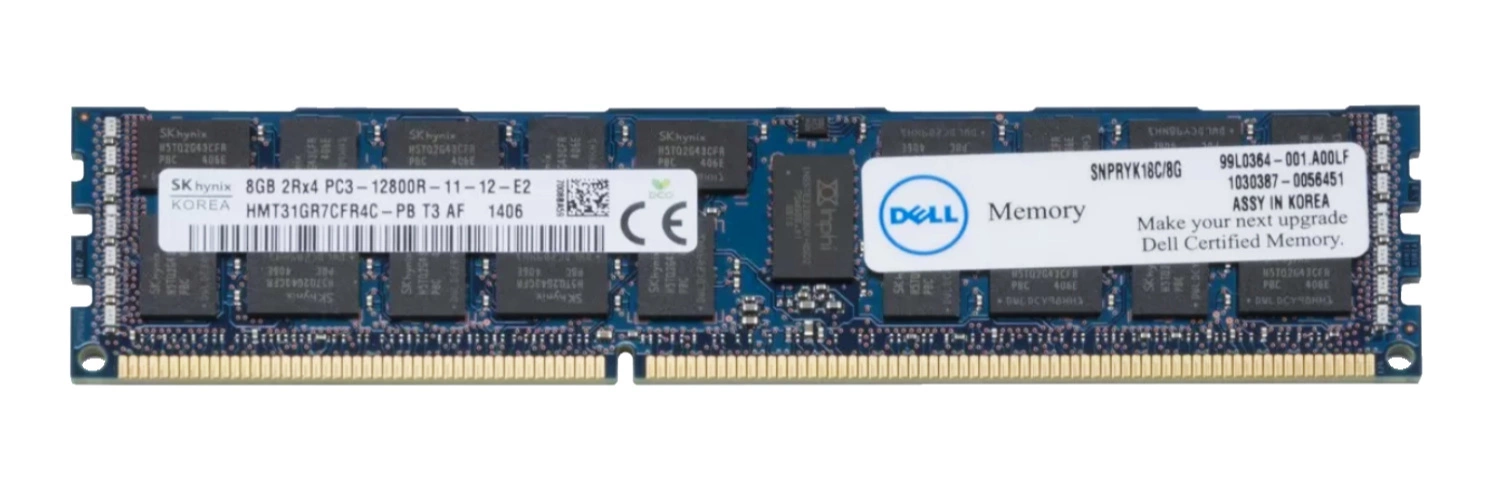 RAM memória 1x 8GB DELL PowerEdge & Precision Workstation DDR3 1600MHz ECC REGISTERED DIMM | SNPRYK18C/8G