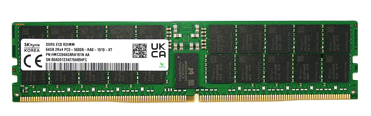 RAM memória 1x 64GB Hynix ECC REGISTERED DDR5 2Rx4 5600MHz PC5-44800 RDIMM | HMCG94AGBRA181N