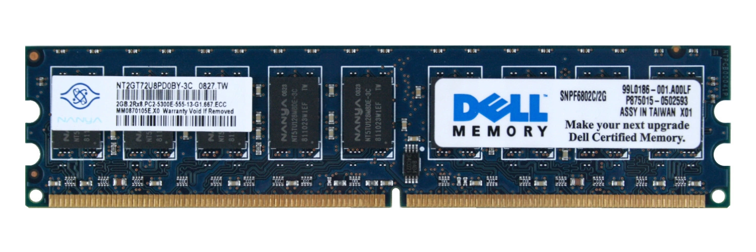 - 2GB memória szett, mely a DELL PowerEdge & Precision Workstation gépekbe szánt. Tartalma 1x 2GB PC2-5300 DDR2 667MHz ECC UNBUFFERED DIMM | SNPF6802C/2G. Az ESUS IT garantálja Önöknek, hogy termékeink 100%-ban eredetiek.