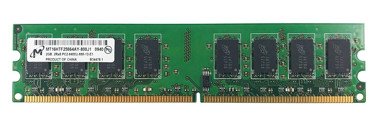 - 2 GB memória szett, melynek tartalma 1x 2GB PC2-6400 DDR2 800MHz NON-ECC UNBUFFERED DIMM | MT16HTF25664AY-800