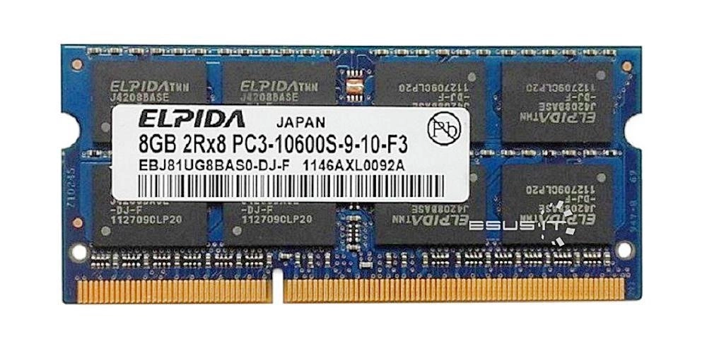 RAM memória 1x 8GB ELPIDA SO-DIMM DDR3 1333MHz PC3-10600 | EBJ81UG8BAS0-DJ-F