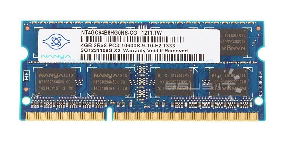 RAM memória 1x 4GB Nanya SO-DIMM DDR3 1333MHz PC3-10600 | NT4GC64B8HG0NS-CG