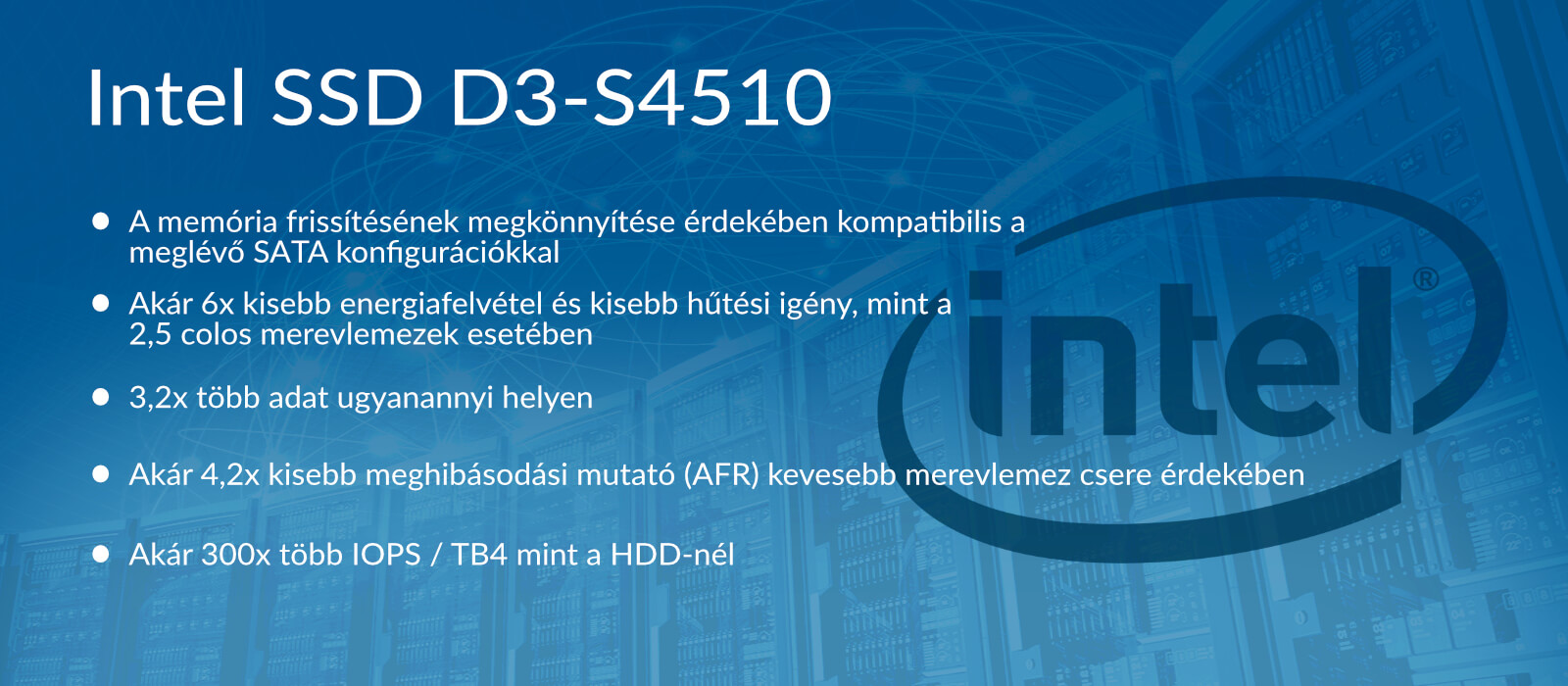 Az Intel D3-S4510 lemezek megbízhatósága csökkenti a meghajtók cserélésnek igényét, amire szükség van merevlemezek esetében. A merevlemezekhez képest 4,2-ször kisebb meghibásodási mutatóval (AFR) az IT osztályoknak kevesebb időt és költséget kell fordítaniuk a berendezés háttértárolójának cserélésére vagy modernizálására. A SSD meghajtók telepítése után az innovatív SATA újraindítás nélkül fejezi be a frissítést, csökkentve az állásidőt.