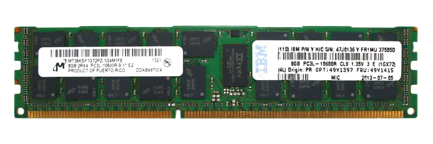 - 8GB memória szett, melynek tartalma 1x 8GB PC3-10600 DDR3 1333MHz 1.35 V / 1.5V ECC REGISTERED | MT36KSF1G72PZ-1G4