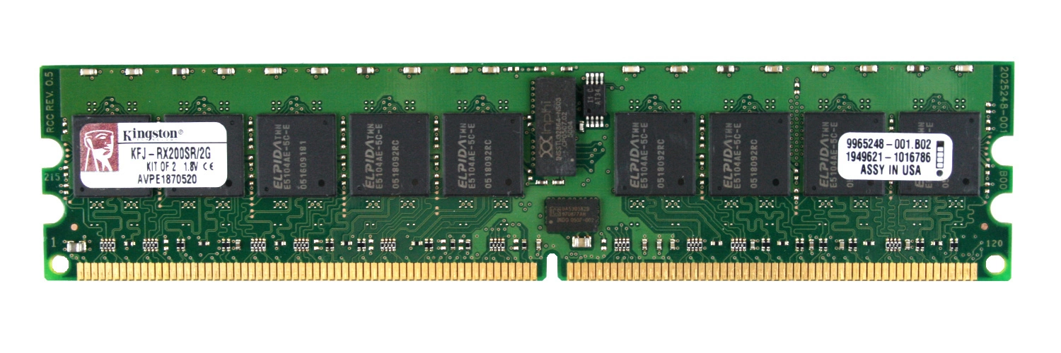 - 2GB memória szett, melynek tartalma 1x 2GB PC2-3200 DDR2 400MHz 1.8 V ECC REGISTERED | KFJ-RX200SR/2G