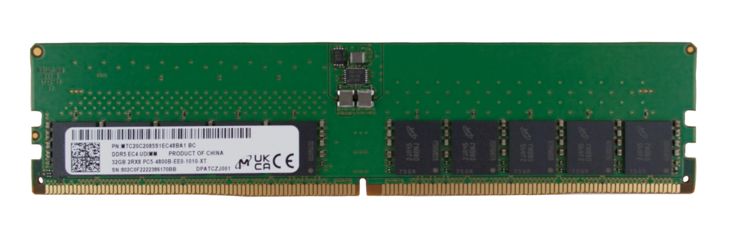 RAM memória 1x 32 GB Micron ECC UNBUFFERED DDR5 2Rx8 4800MHz PC5-38400 UDIMM | MTC20C2085S1EC48BA1R