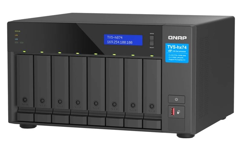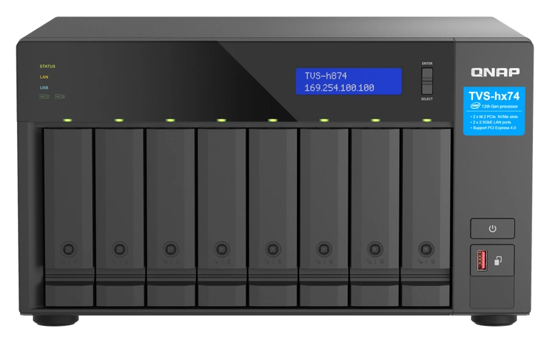 - NAS-kiszolgáló QNAP TVS-h874 | CPU: Intel Core i5-12400 RAM: 32GB | 2x 2.5GB RJ-45, 3x USB 3.2 Gen 2 | Garancia 3 év
