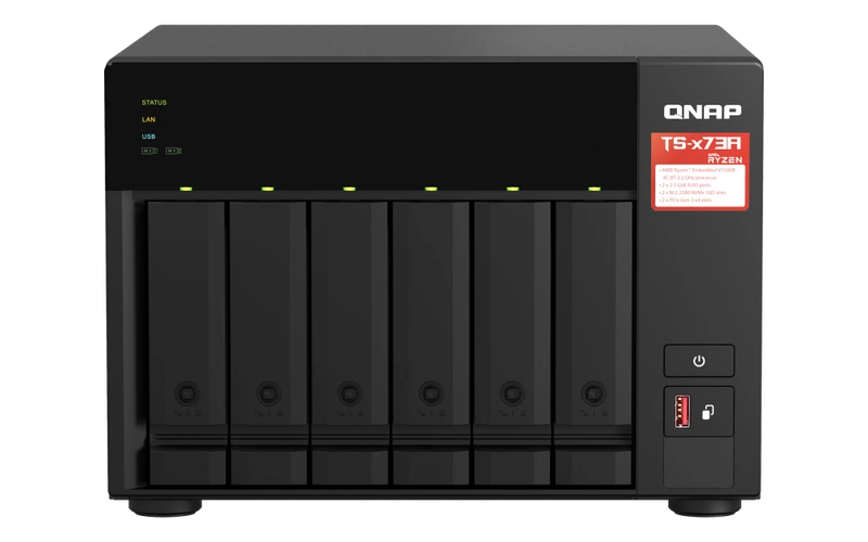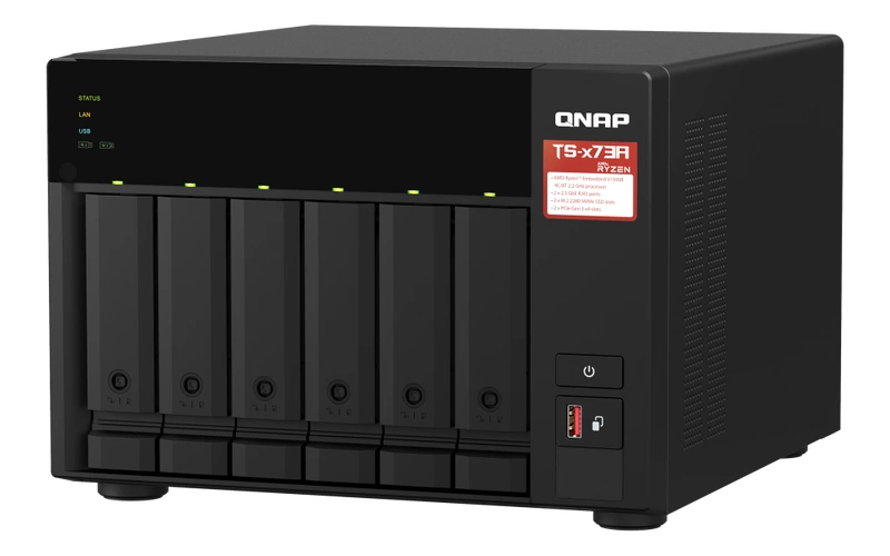 - NAS-kiszolgáló QNAP TS-673A | CPU: AMD Ryzen V1500B RAM: 8GB | 2x 2.5GB RJ-45, 4x USB 3.2 Gen 2 | Garancia 3 év
