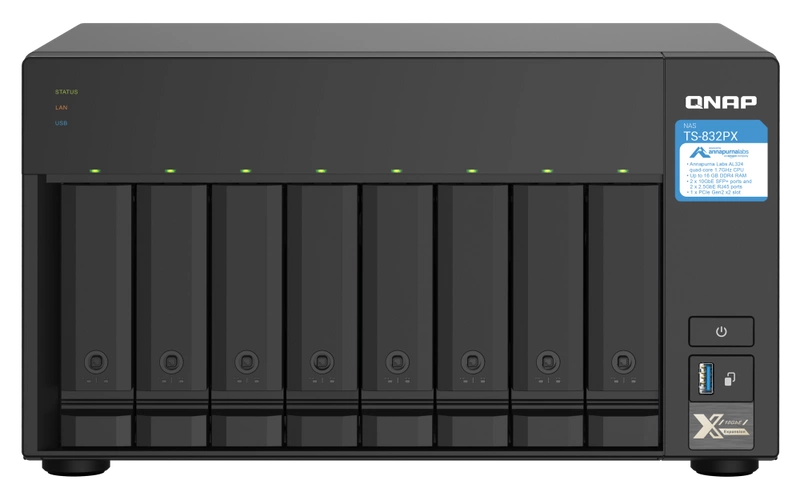 - NAS-kiszolgáló QNAP TS-832PX | CPU: AnnapurnaLabs Alpine AL324 RAM: 4GB | 2x 2.5GB RJ-45 2x SFP+, 3x USB 3.2 Gen 1 | Garancia 3 év